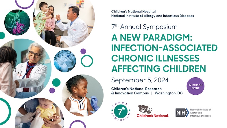 7th Annual Symposium (Children’s National Research and Innovation Campus): September 5, 2024 | Learn more >This annual symposium celebrates the partnership between Children’s National Hospital and the National Institute of Allergy and Infectious Diseases (NIAID). Established in 2017, the Children's National - NIAID partnership focuses on advancing the health of children with allergic, immunologic, and infectious diseases through collaborative research and education. Together with our co-host, the Pediatric Pandemic Network (PPN), it focused on "A New Paradigm: Infection-Associated Chronic Illnesses Affecting Children."
